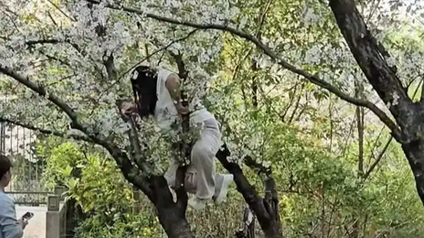近日,上海一女子攀爬20年樱花树拍照致树木倒伏,引发关注。经多部门约谈,压塌樱花树女子认错愿赔偿,城管将依法处罚。目前树木已扶起修剪,存活情况尚不确定。